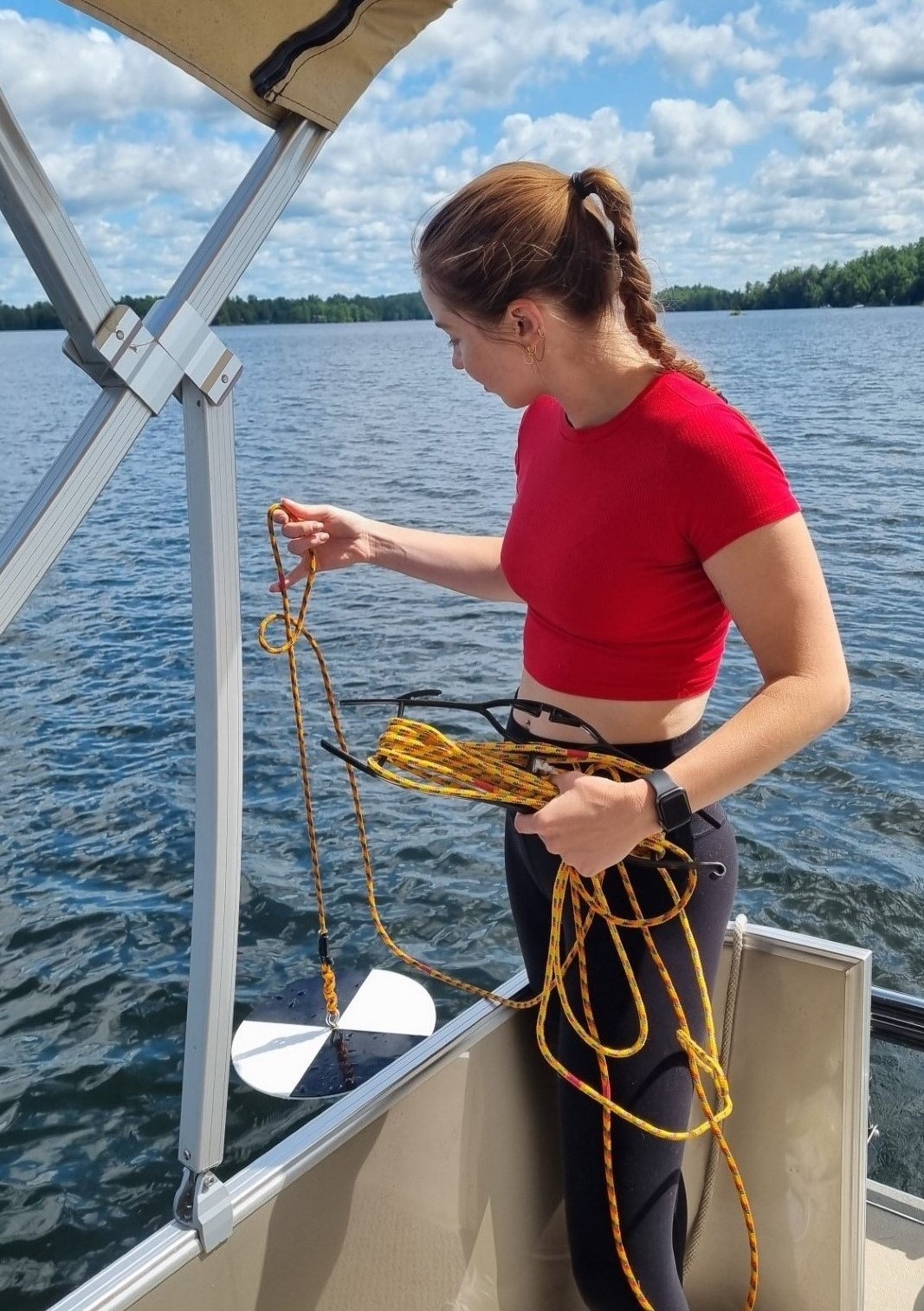 Kate is working on examining the interplay of dissolved oxygen in the hypolimnion on nutrient release and the associated effects to phytoplankton communities within the Kawartha Lakes Region. Her project involves both field collection and field experiments centralized around defining and understanding the effects of hypolimnetic anoxia on phytoplankton stoichiometry, biomass, and community composition.